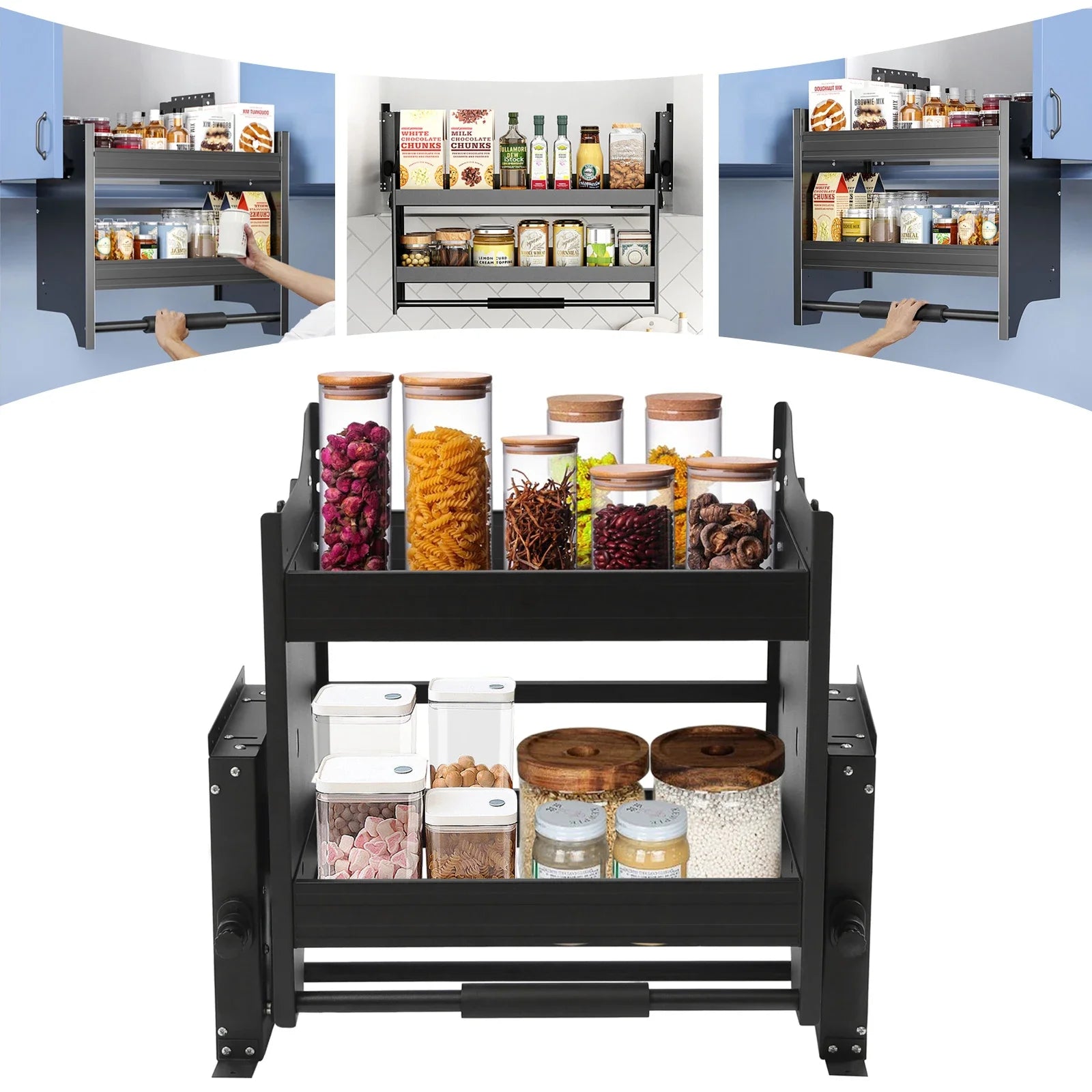 Hign-concerned Pull-Down Kitchen Wall Cabinet Shelving 2-Tier Organizer
