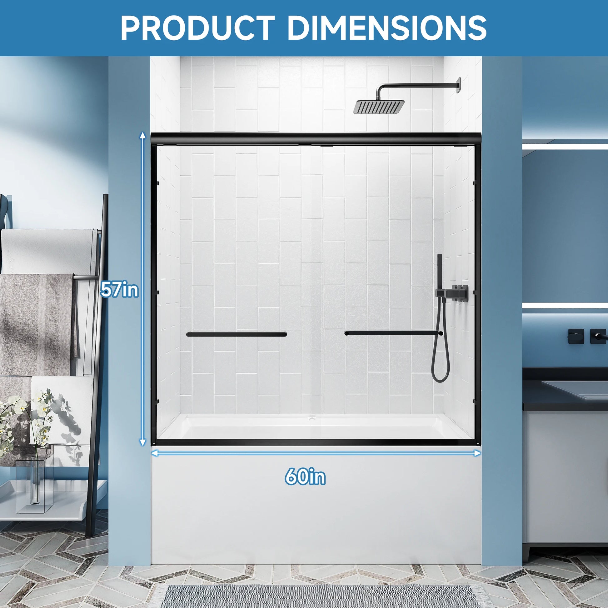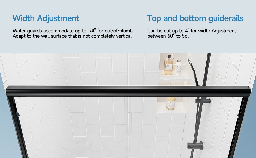 56-60"x57" H Tub Shower Door, Aluminum Frame Double Sliding Shower Door, 1/4"(6mm) Tempered Glass Bathroom Glass Sliding Door