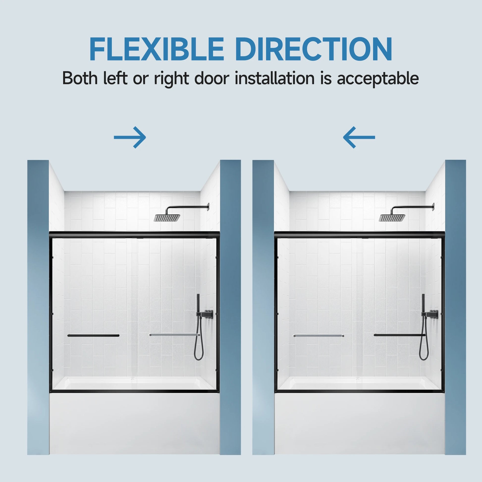 Modern Minimalist Design: Matte black frame paired with transparent glass, matching any bathroom style.