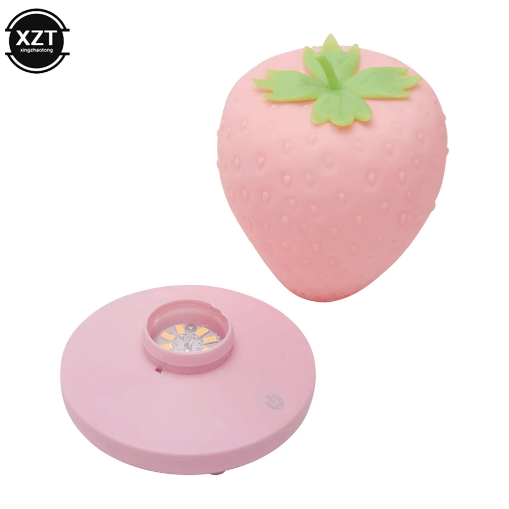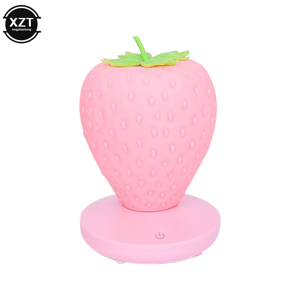 LED Strawberry Lamp for Bedroom Silicon Touch-Sensor USB Rechargeable Dimmable Idyllic Bedside Night Light for House Decoration